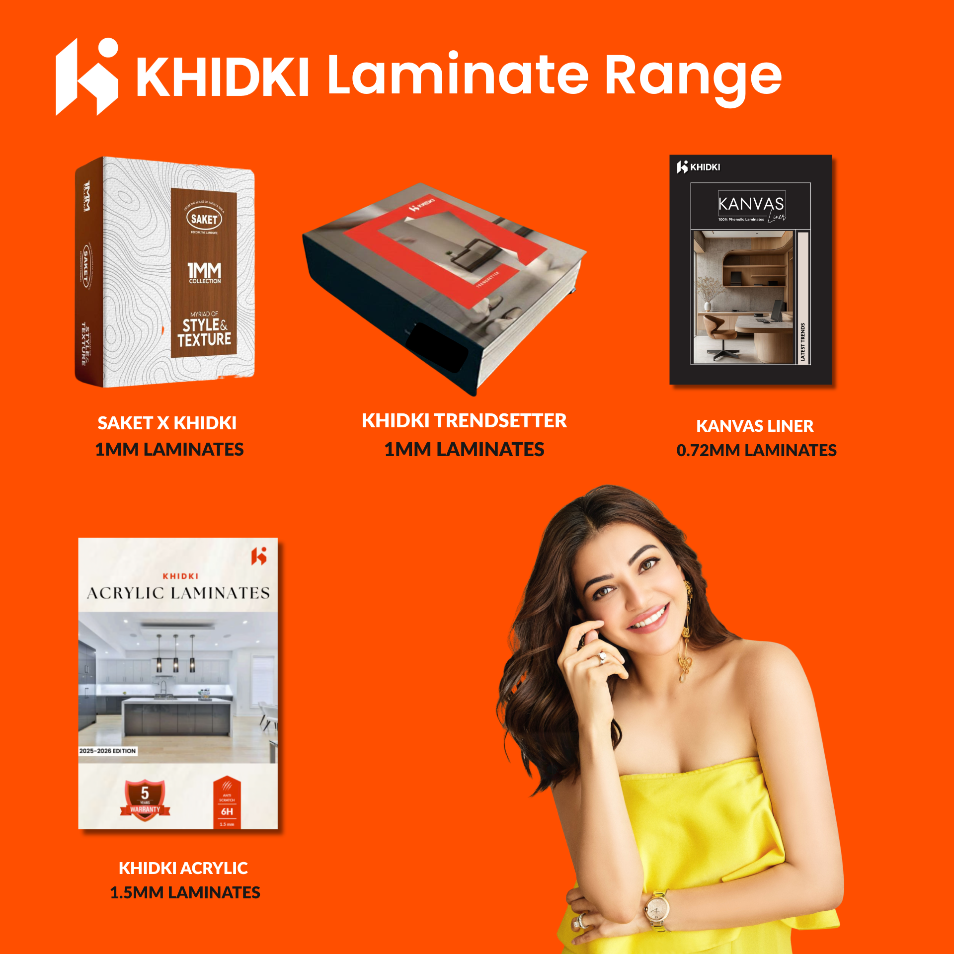 Laminate prices at Khidki Homes start from: Liner laminates: ₹300 per sheet, 0.8mm laminates: ₹680 per sheet, 1mm laminates: ₹1,180 per sheet.