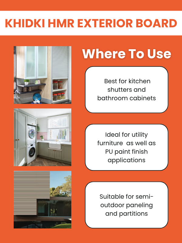 Khidki Exterior Grade MDF (Red Color) boards are made entirely of Hardwood. High quality resin and more density ensures every sheet is strong and smooth with a long life. It is available in 7mm, 11mm, 16mm, 17mm, 18mm and 25mm thicknesses. It is available in 8 ft x 4 ft size. Khidki Exterior Grade MDF is suitable for making wardrobes and kitchen cabinets. The product offers good quality at affordable prices and provides you the Best Value for Money. Khidki MDF is resitant to Termite, Borer & Fungus attacks. Exterior Grade MDF boards can be used for DUCO/PU Paint, CNC designs and for pasting Acrylic Laminates